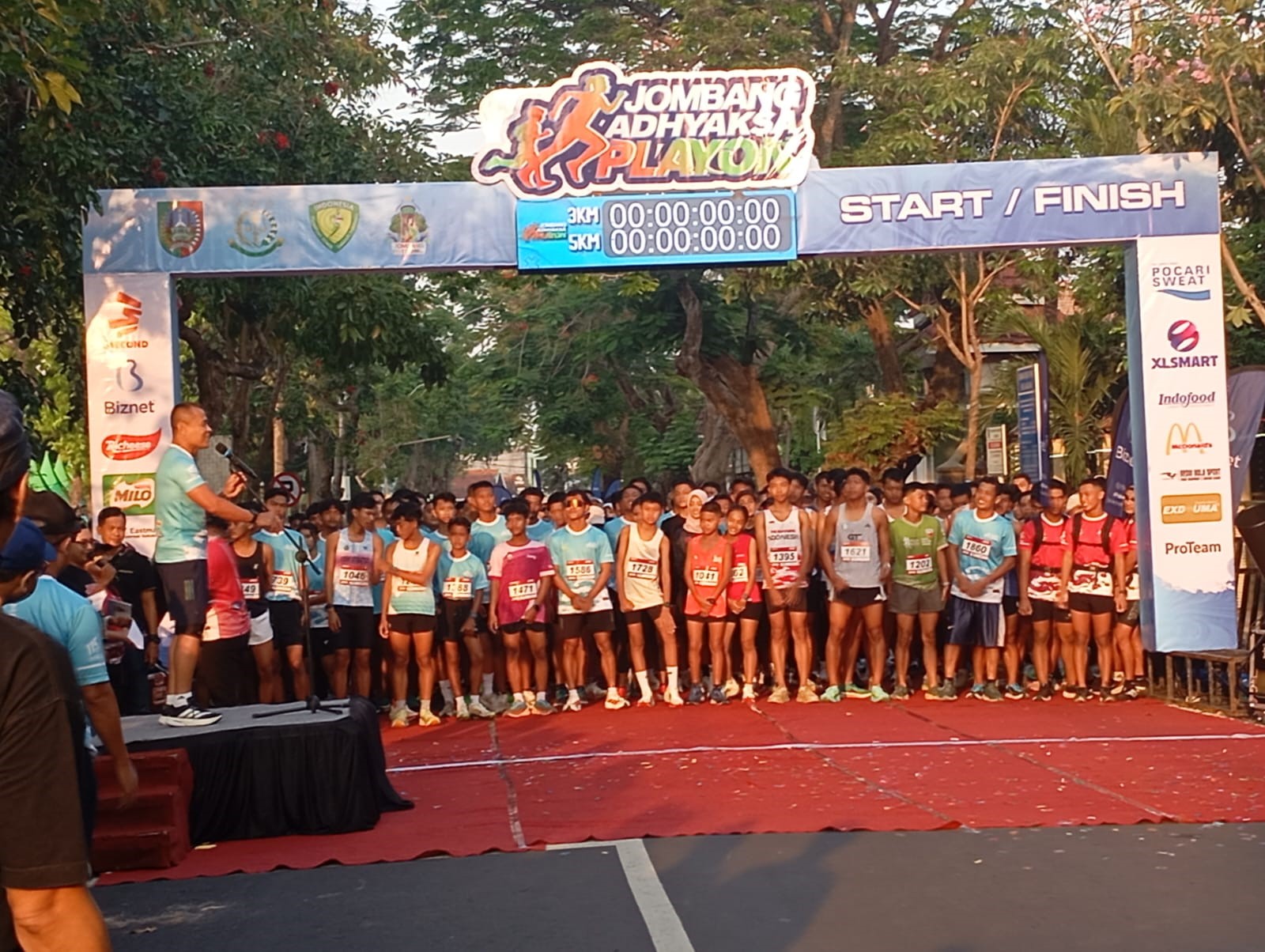 Ribuan peserta memeriahkan acara akbar Jombang Adhyaksa Playon 2025, sebuah kegiatan lari yang menjadi salah satu penyemarak perayaan Jombang Fest 2025. Event ini diselenggarakan dalam rangka menyambut Hari Jadi ke-115 Pemerintah Kabupaten Jombang sekaligus Hari Santri Nasional 2025. Start dan finish depan SMA Negeri 1 Jombang. Minggu (19/10/2025)