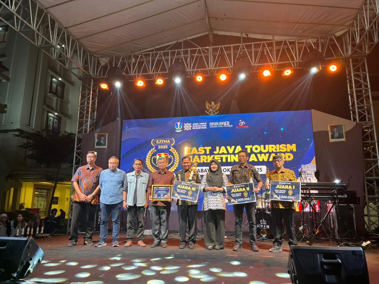Surabaya, 15 Oktober 2025 – Kabupaten Jombang kembali menorehkan prestasi membanggakan di ajang East Java Tourism Marketing Award (EJTMA) 2025 yang digelar pada Rabu (15/10/2025) di Balai Pemuda Surabaya (Aloon-Aloon Surabaya). Dalam acara bergengsi tersebut, Kabupaten Jombang berhasil meraih penghargaan Harapan II kategori Best Social Influence.
