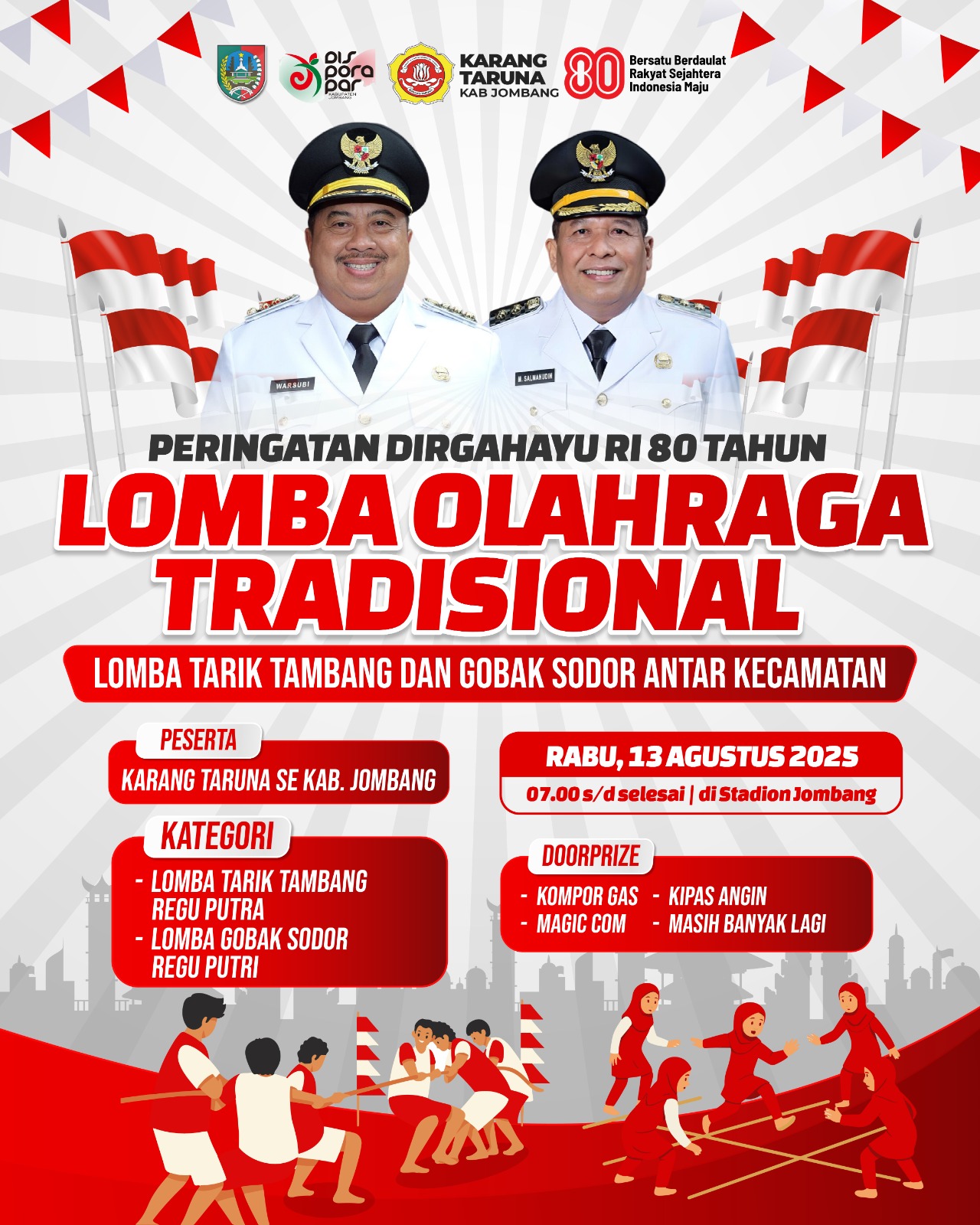 Disporapar Kabupaten Jombang akan menyelenggarakan kegiatan tersebut dalam rangka Peringatan HUT RI ke 80 pada Rabu, 13 Agustus 2025 pada pukul 07.00 WIB di Stadion Merdeka Jombang